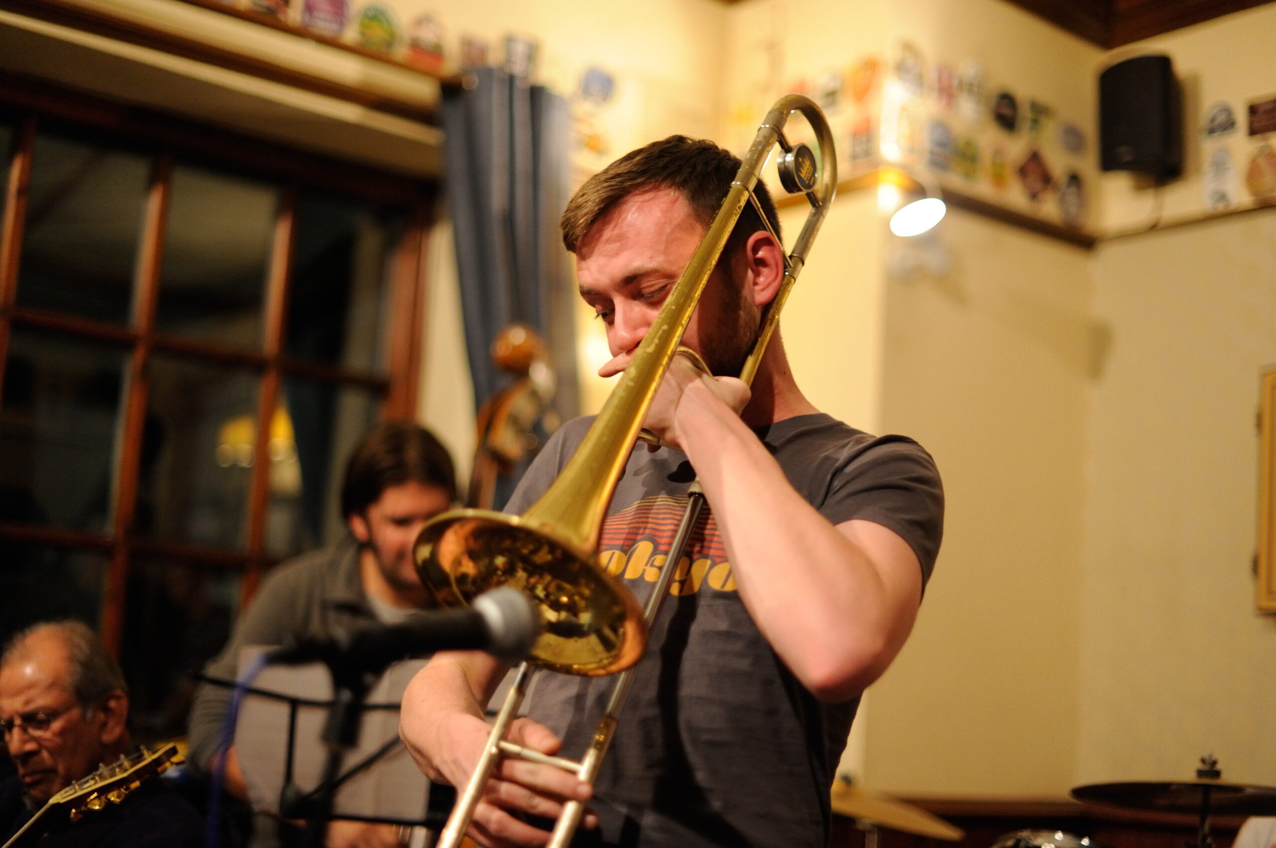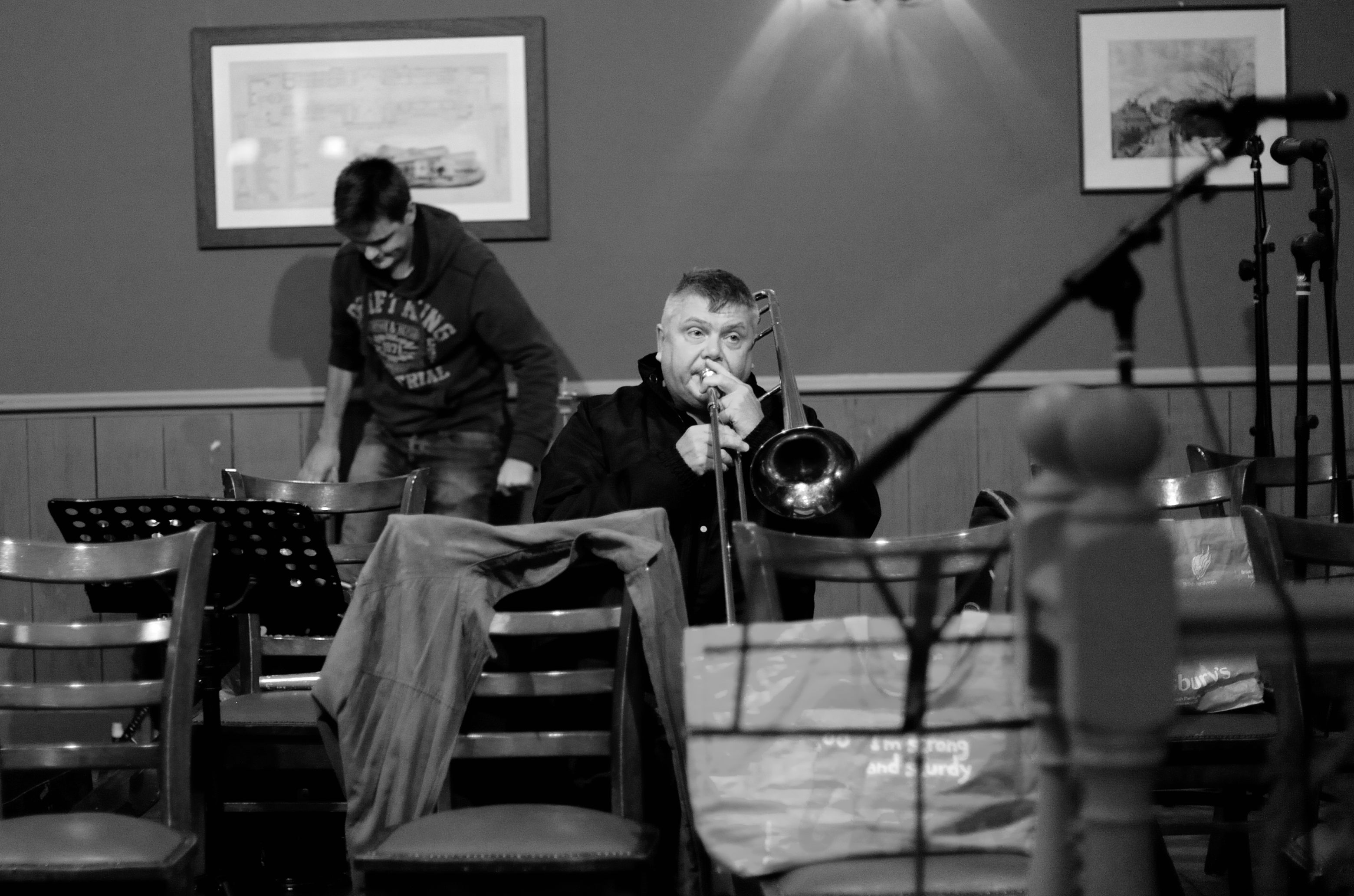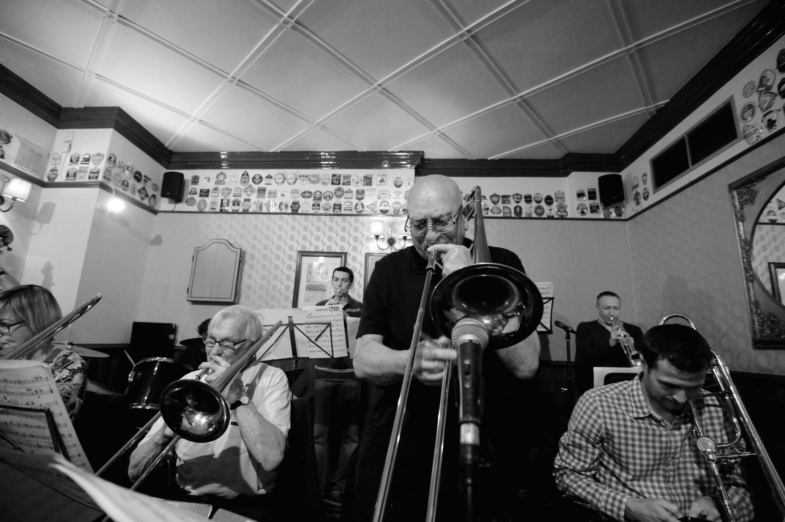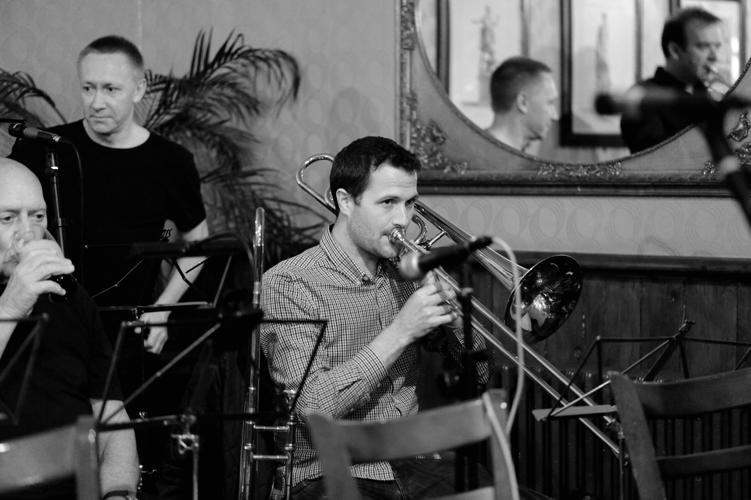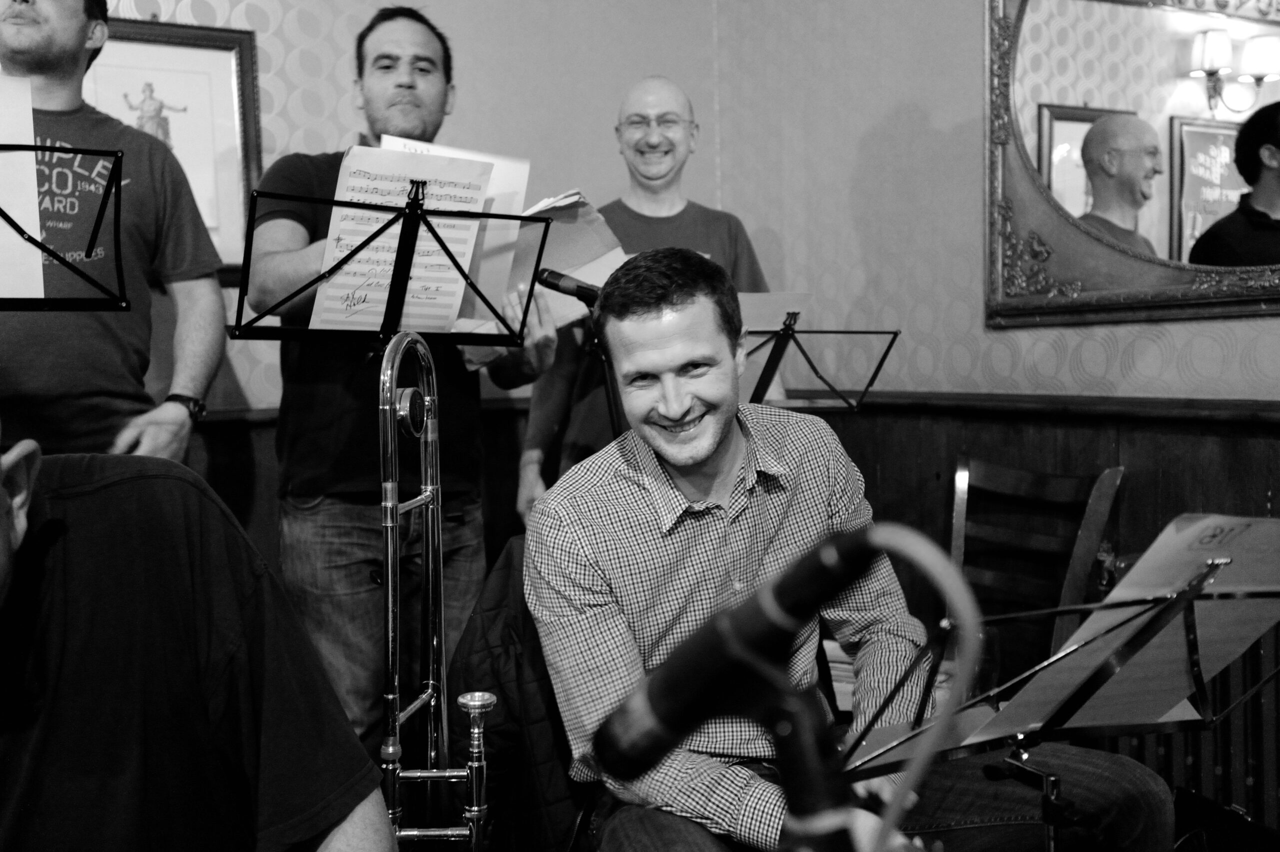 Meet the trombone section: the Big Beer Band’s heavy artillery. Here is where the slide positions are considered “approximate” at best, and a perfect glissando is usually just a lucky accident. A section where the only thing more well-oiled than the slides are the musicians operating them…